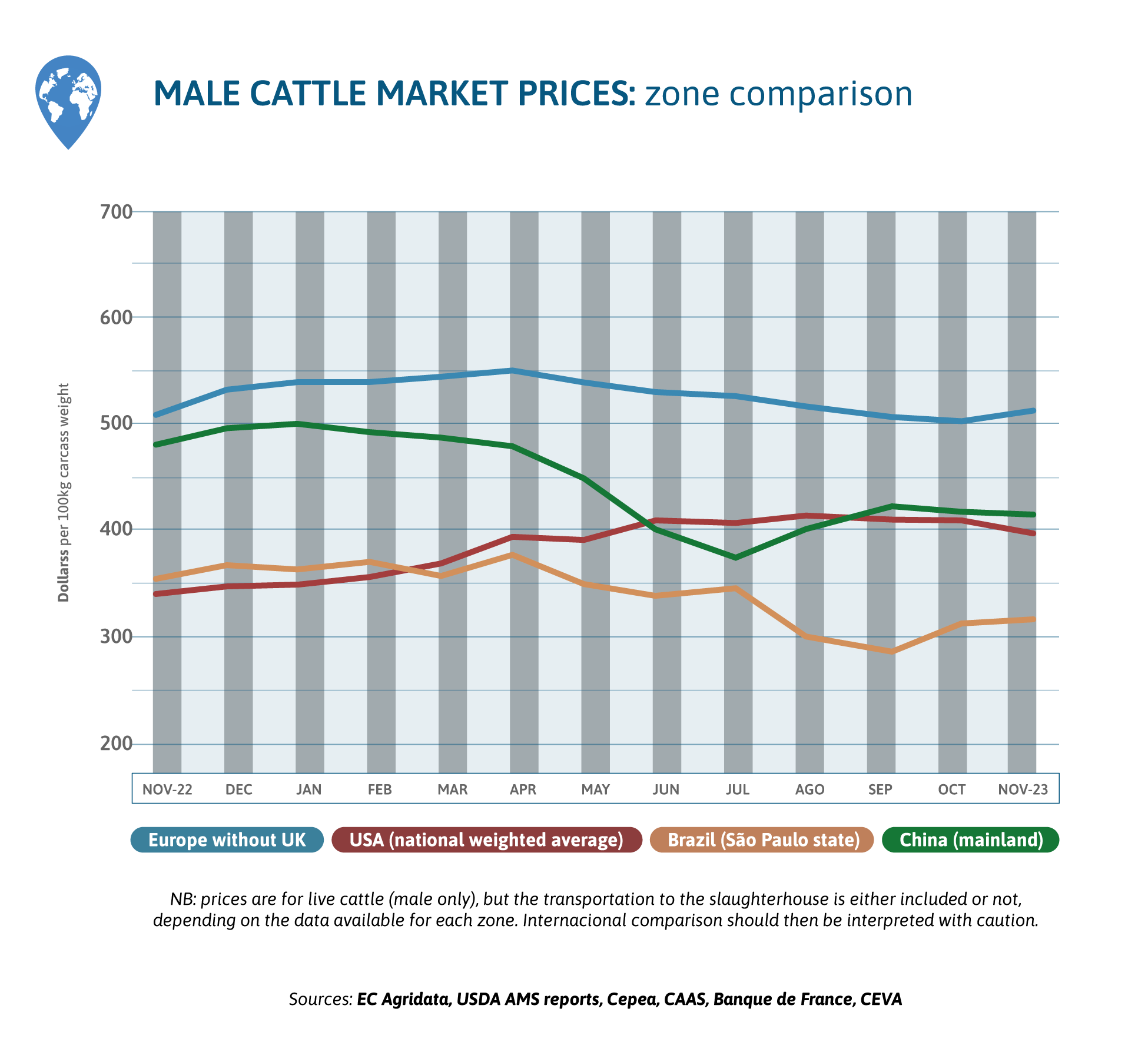 Beef prices dynamics are divergent around the world.